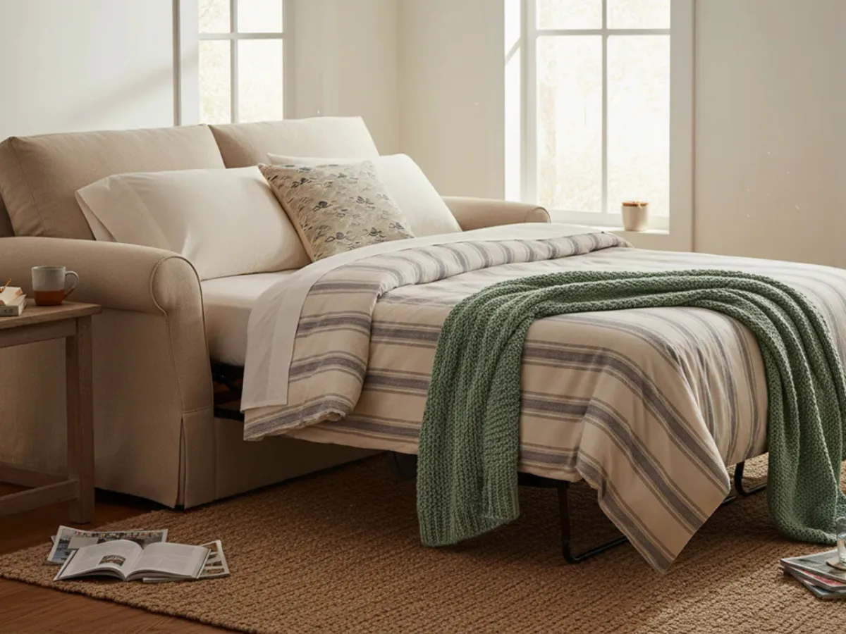 Refined sleeper sofas handcrafted in Los Angeles, designed to look elegant by day and offer real comfort by night, with a built-in queen mattress that guests actually enjoy sleeping on.
